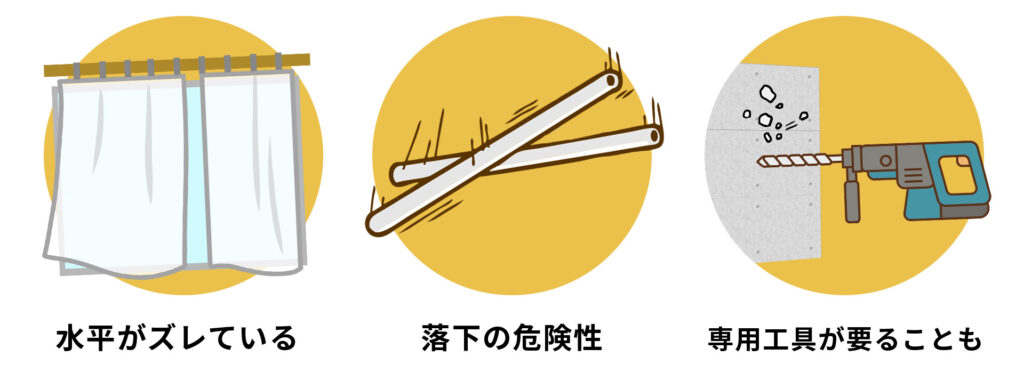 カーテンレールの取り付けは簡単に見えるのですが、水平がずれてしまったり、壁の下地が弱くて固定できなかったりと、自分で作業すると意外と難しく、失敗の声も少なくありません。中には「取り付けた直後にレールごと落ちてきてしまった」というケースもあるほどです。